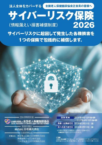 本保険は法人全体でご加入いただきます。老健施設のみでのご加入を希望される場合は、介護老人保健施設総合補償制度 Ⅳ.サイバーリスク保険をご検討ください。